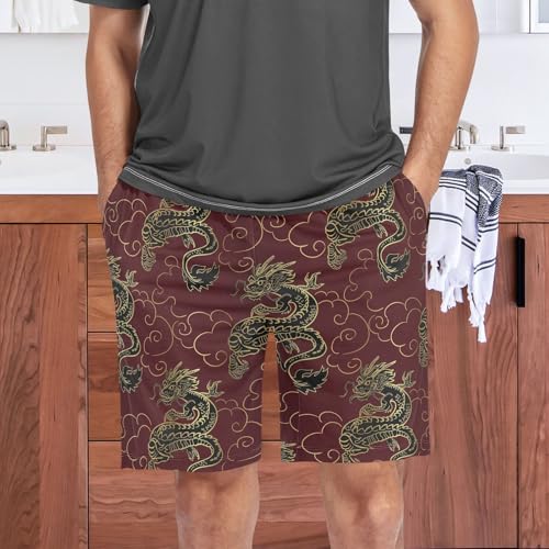 Why Choose ALAZA Black Gold Dragon Men's Pajama Shorts Sleepwear Pajama Bottom Lounge Pants Wear with Pocket?