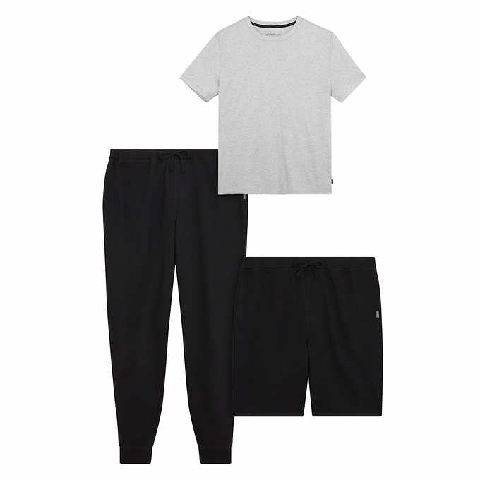 Why Choose Eddie Bauer Men's Pajama Set - 3 Piece Sleep T-Shirt, Jogger Pant, and Lounge Short, Black Bottom & Heather Gray Top, SIZE MEDIUM?