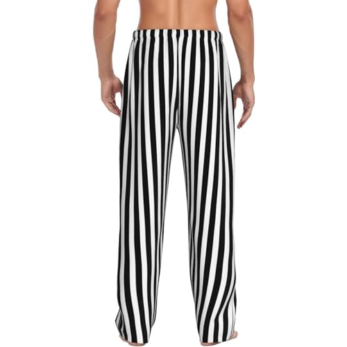 trending ! Mens Pajama Pants - Black White Stripe Print smooth Sleep Lounge Pants For Men, Casual Pj Bottoms With Pockets