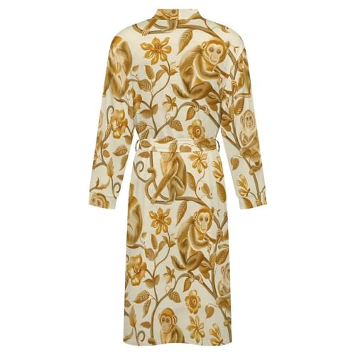 Beauty Golden Monkey silky Robe Long Sleeve Bathrobes V Neck Sleepwear Spa Robes with Belt Men Woman