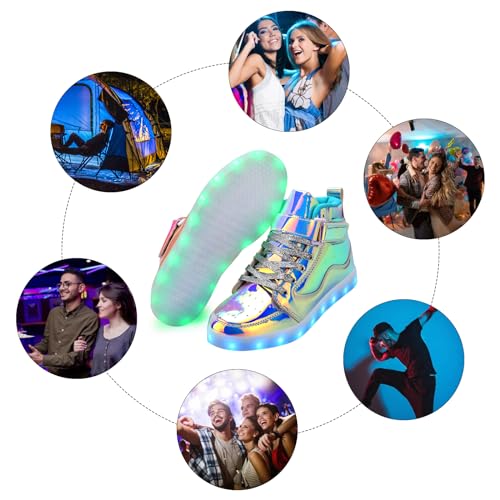 Sole material: PolyurethaneOuter material: SyntheticClosure type: Lace-UpIlluminate Your Steps: Step into the spotlight with these adult light up shoes! Designed for men and women, these high-top LED sneakers are the perfect blend of style and functionality.USB Rechargeable: These light-up sneakers come with a convenient USB recharging feature, allowing you to easily recharge the built-in lights for repeated use. Stay eco-friendly while enjoying the long-lasting illumination these LED Shoes provide.Glow in the Dark Technology: Be the center of attention at dancing parties or any nighttime event with these glow in the dark shoes. The LED lights embedded in the soles create a mesmerizing and vibrant glow, enhancing your overall look and creating a dynamic visual impact.Perfect for Parties and Events: Whether you're hitting the dance floor, attending a party, or simply want to add a unique flair to your outfit, these LED shoes for men and women are the perfect choice. The combination of style, comfort, and illumination makes them an ideal accessory for various occasions.Comfortable and Durable Construction: The mens light up shoes are constructed with quality materials to ensure they withstand the rigors of dancing and daily wear. Step into the future of footwear with these LED high-top sneakers. Perfect for everyday use. High quality materials and excellent craftsmanship ensure long-lasting durability.