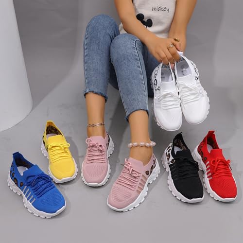 trending ! Women Trainers Sports Running Shoes Platform Lace Up Walking Shoe Knit Mesh Breathable Sneakers Leopard Print Jogging Shoes