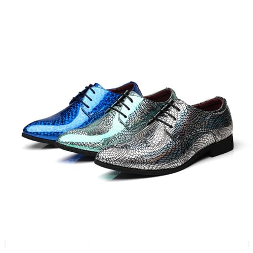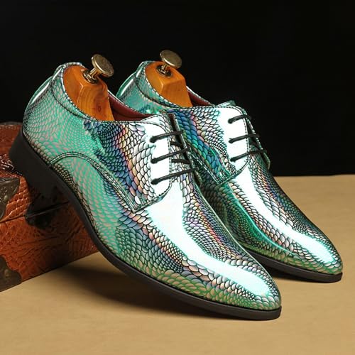 ByErz Men Fashion Dress Business Shoe Pointed Toe Patent Leather Lace Up Oxford Black Blue Green