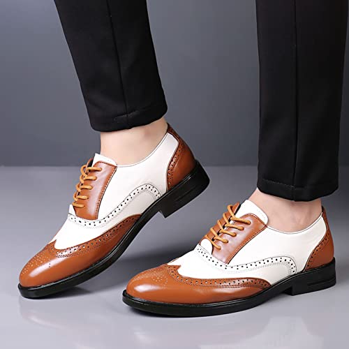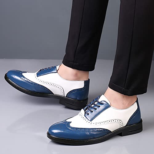 Men's Colorblock Derby Dress Leather Shoes,Fashion Carving Floral Wingtip Block Lace-up Formal Business Casual Shoes