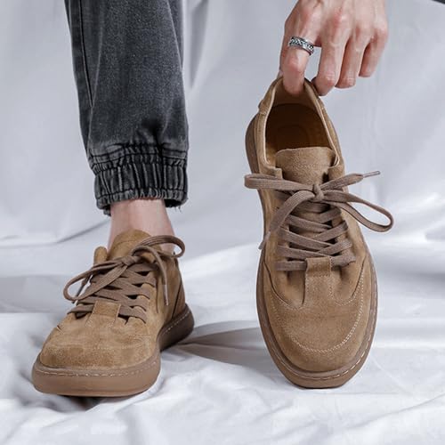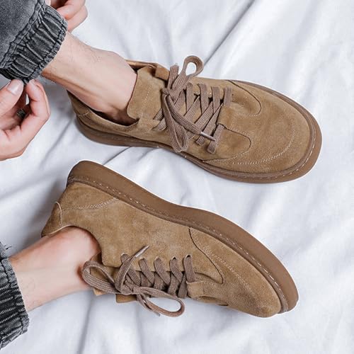 Men's Khaki Suede Casual Dress Shoes,Vintage traditional Comfort Wingtip Lace Up Business Oxford Fashion Sneakers