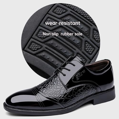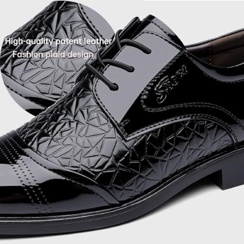 Men Patent Leather Chunky Heels Dress Oxfords Fashion Pointed Toe Plaid Lace-Up Formal Tuxedo Shoe Classical Casual Business Wedding Derby Shoes