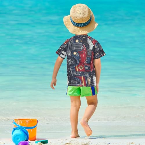 Boys Short Sleeve T-Shirts Cartoon Fire Engine Rashguard Kids Swim Shirts Sun UPF 50+ Multicoloured