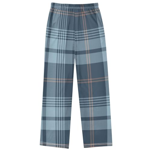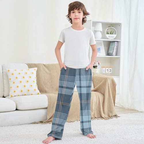 trending ! Boy's Pants Plaid Pattern Blue Brown Jogger Pants Elastic Waist Long Bottoms Trousers with Pockets 6-14 Years